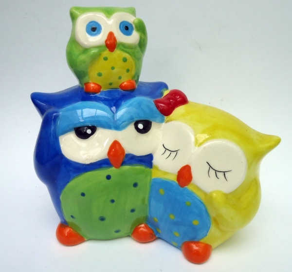 • Enfeite em cerâmica Família de Corujas - Pai, mãe e filhote - 15 x 16 x 7 cm